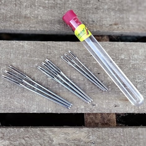 Set of nine blunt ended, large eye, plaiting needles in 3 sizes (52mm, 60mm, 70mm) to suit all manes. Supplied with a neat little clear plastic tube container.