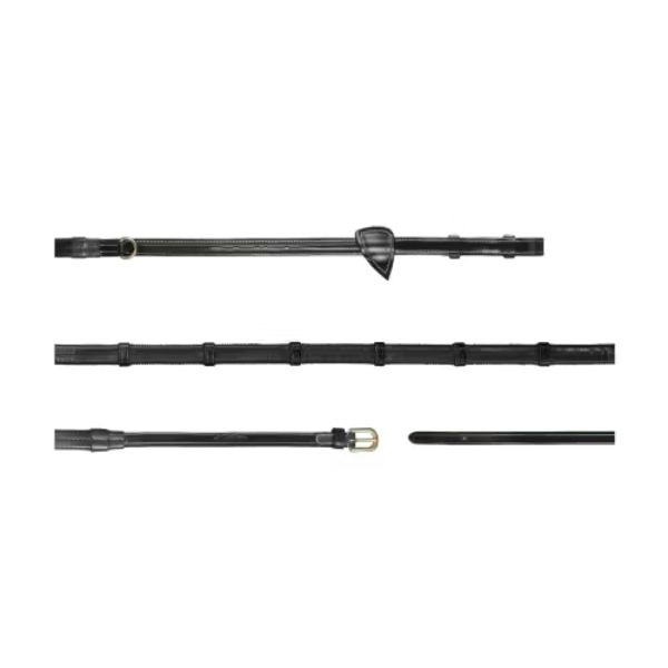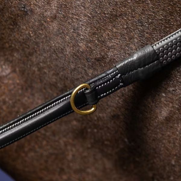 Howlett Rubber Reins with 7 leather loops with decorative topstitching and a single Dee ring fixed at the beginning of the rein to be used in combination with a running martingale attachment.