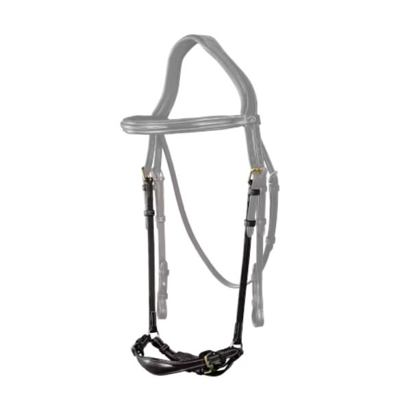 Drop noseband adjustable over the nose Narrow pull-back closure mounted on a soft padded protective leather backing Compatible with headpieces of the D Collection