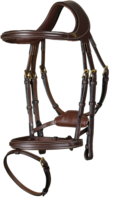 Crafted from the finest grade 1 Catalan leather with an ‘English leather’ finish. Specially designed headpiece & browband in one piece to take pressure off the poll (1st & 2nd cervical vertebrae). Unique throatlatch system linked to the noseband to ensure that the headpiece sits behind the 2nd vertebra – throatlatch must fit snugly against the cheeks