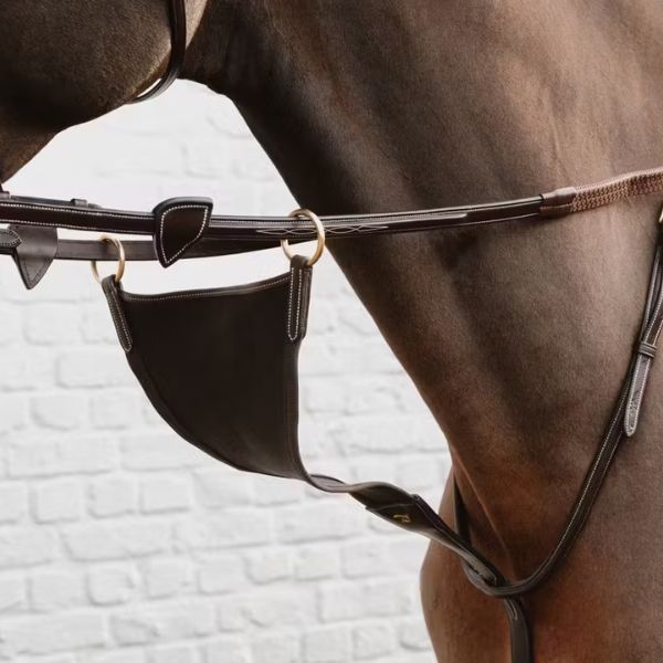 The martingale is part of the D collection, which means the color of the stitching Is cream and the buckles are golden. Available in brown and black.