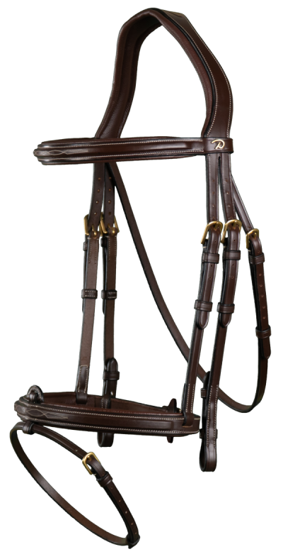 Flash noseband bridle crafted from Grade 1 Catalan leather featuring Dyon’s latest innovation – the S shaped anatomic headpiece. Other features include fancy stitched, slightly raised and padded flash noseband and browband, cream stitching & brass buckles