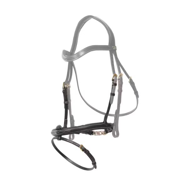 An flash noseband with chains offers several benefits for both horse and rider. The chain adds subtle leverage, helping to maintain a stable bit position and encourage the horse to keep its mouth closed, reducing evasions like opening the mouth or crossing the jaw. This combination improves communication between horse and rider by providing more precise control with minimal effort. This specific noseband can be used for strong horses Instead of using a stronger bit.
