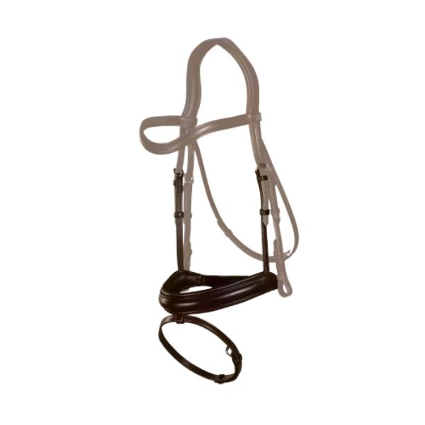 Matte Medium Noseband With Flash for dressage. Supple anatomical 28 mm wide noseband available in matte leather only Closed by a roller buckle with a padded protective backing 1/2” (13 mm) removable flash strap