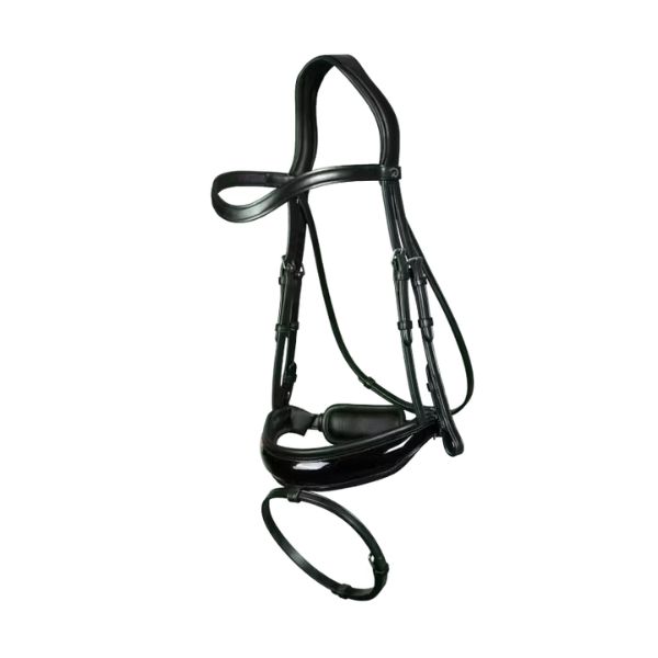 Product Description: The Patent Large Crank Noseband Bridle with Flash is designed to combine sophisticated style with enhanced control, making it an ideal choice for both competitive events and daily training. Crafted from high-quality leather, this bridle ensures durability and a refined, polished appearance that will stand out in any setting. The premium leather provides a luxurious feel, adding an extra touch of elegance to your equestrian ensemble.