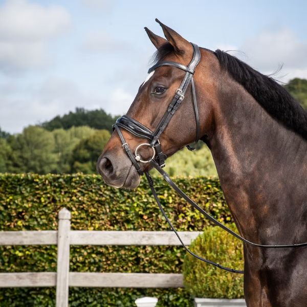 The ergonomic padded headpiece is designed to distribute pressure evenly across the horse’s poll, minimizing discomfort and preventing pressure points. This thoughtful design enhances your horse’s comfort, allowing for better focus and performance during training sessions and competitions. The padding ensures that the headpiece remains comfortable even during extended use, contributing to a more relaxed and responsive ride.