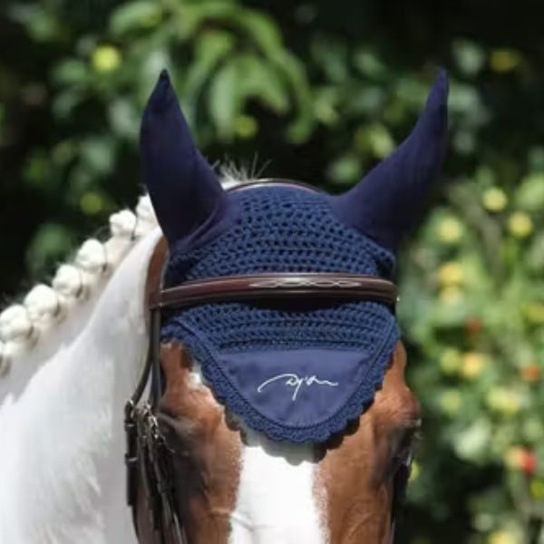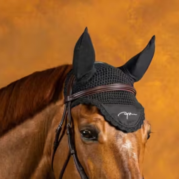 Horse hat, 100 % cotton with soft ears made of “T-shirt” material with embroidered Dy’on logo on the outside and inside (mirror image). Putting on a cap protects your horse from insects.