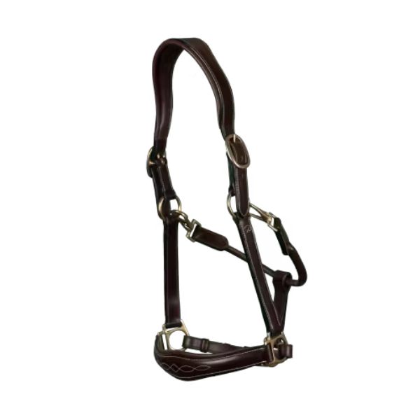 2-in-1 travel and grooming Leather Head Collar with anatomical headpiece and extra-supple leather noseband.With a removable throatlatch attached by two snap hooks that can be turned into the grooming version.