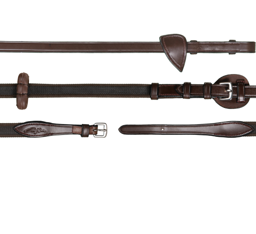 • Reins in grip web – width 5/8” (16 mm) with 1 fixed (stitched) “hand” stopper in rubber on each rein – 5 length adjustment holes – 2” (5 cm) between holes