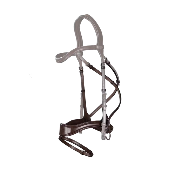 Redesigned and patented noseband for comfort and precision. It is delivered with the Cross Pull straps that pass through the D buckles of the noseband, cross under the throat and attach to the throatlatch of the D Motion headpiece to ride in Cross Pull mode. The part in contact with the muzzle is wider and flexible. The two square-raised parts on each side of the noseband ensure that it remains in place.Two D-buckles to hang the reins directly or to the cross pull.