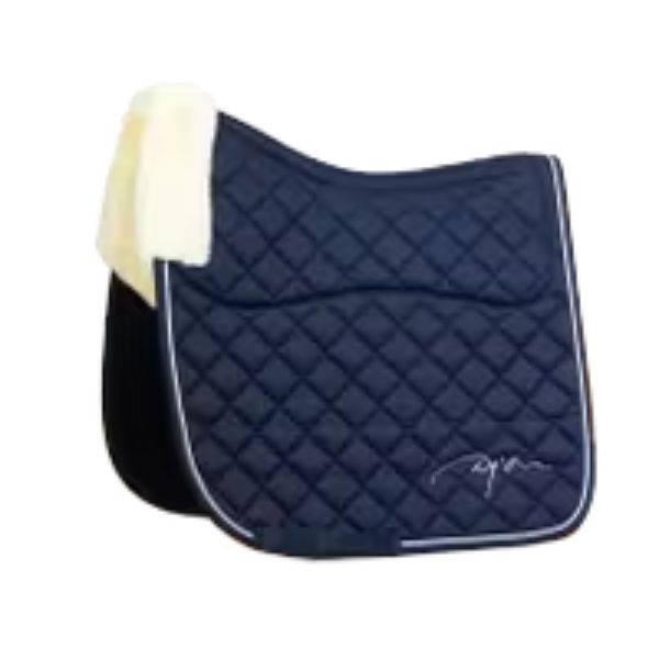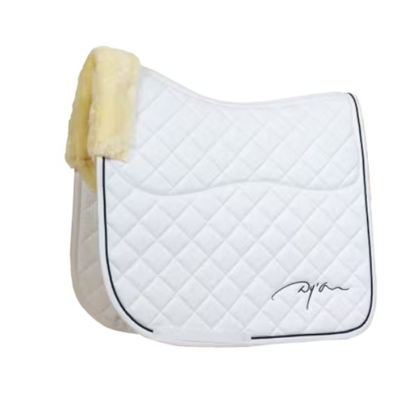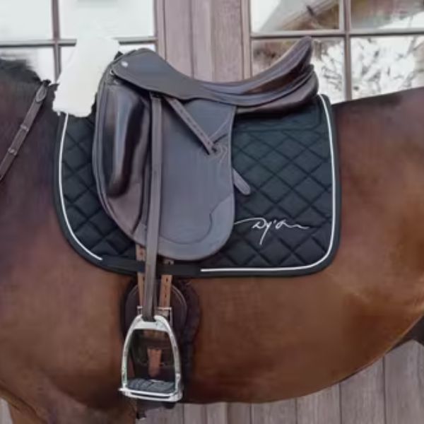 The Dy’on logo on each side of the saddle pad leaves room to embroider your own logo if you wish. The saddle pad has no annoying straps that attach to the saddle, just a nylon strap for the girth.