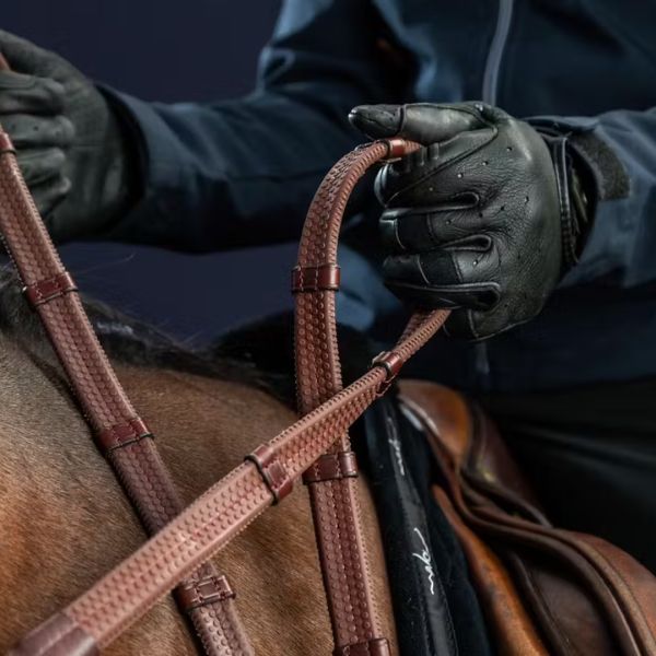 Ideal for jumping, eventing, and everyday riding, these reins offer a secure hold even in challenging conditions. The fine balance between firm grip and suppleness makes them a favorite among professional and amateur riders alike. Whether you’re riding in the ring or out on the cross-country course, these reins provide confidence-inspiring control. Combine our reins with one of our bridles.