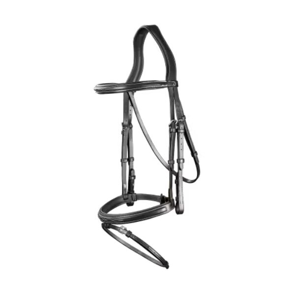 This classic flash noseband bridle offers the perfect balance of versatility, elegance, and comfort. The timeless design ensures a refined appearance in any setting, whether in the show ring or during everyday training. Designed with anatomical comfort in mind, the soft padding and carefully shaped headpiece help distribute pressure evenly, enhancing the horse’s well-being.