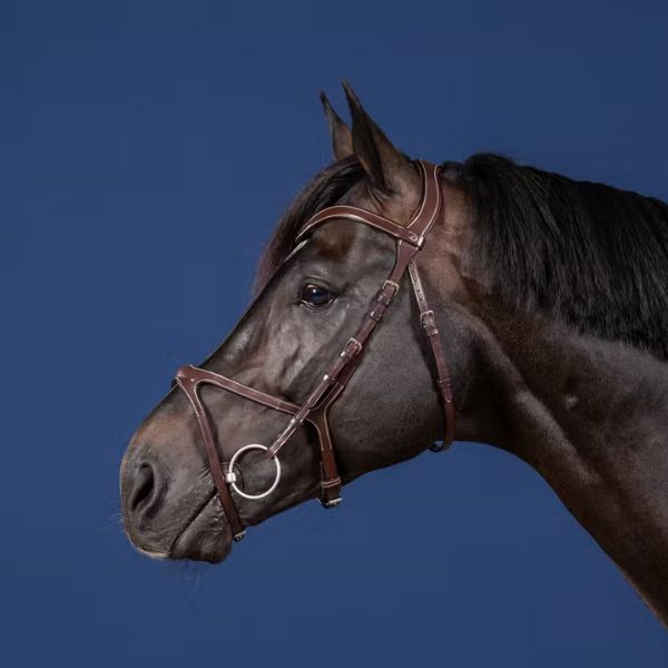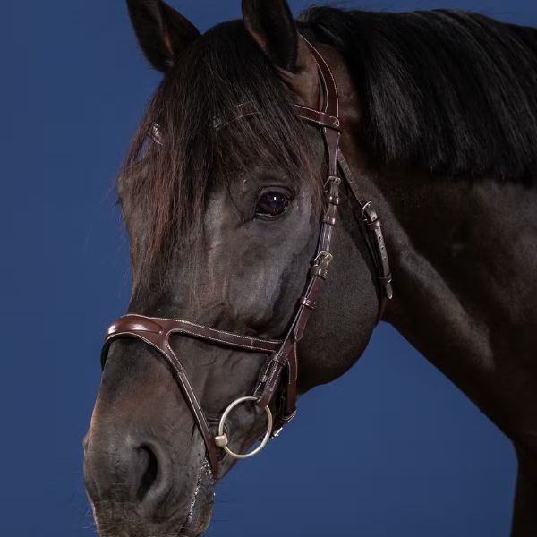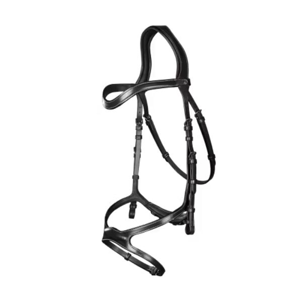 Supple V-shaped browband Headpiece has a single cheekpiece to which both the cheekpiece of the noseband and bit carrier attach Extra-supple Grakle noseband to disengage the bones of the facial crests and avoid pressure on the infra-orbital foramina This is the most advanced bridle when it comes to adapting to the horse’s anatomy. It avoids or relieves pressure on most of the sensitive spots on the head