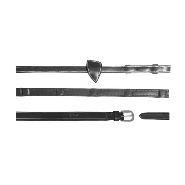 These reins are designed for durability and practicality. With eight integrated leather stoppers, they provide exceptional grip, offering riders greater control and precision during training or competition. Promotes harmony by creating a smooth communication between a horse and his rider. The stoppers are covered with softy leather, ensuring both comfort and a secure hold.