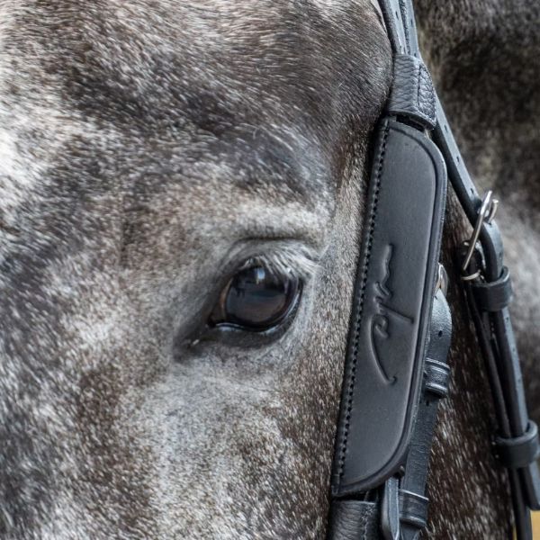 Dy’on Rolled Dressage Collection Large Crank Patent Noseband Double Dressage Bridle White Padding