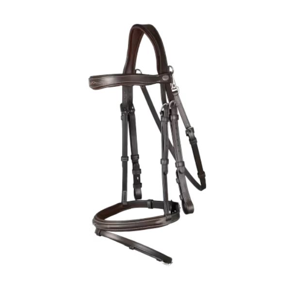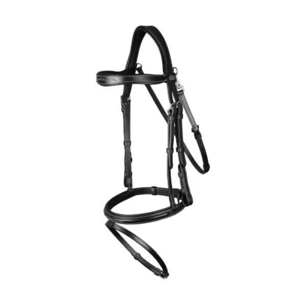 This flash noseband bridle is the kind of gear that works as hard as you do. Made from rugged yet flexible buffalo leather, it’s designed to stand up to the demands of regular schooling while still looking polished enough for competition. The real convenience comes from the snap hook at the throatlatch, which lets you tack up or untack quickly—no fumbling with buckles, even when you’re in a rush or wearing gloves. The fancy stitching adds that little something extra, elevating the look without sacrificing functionality.