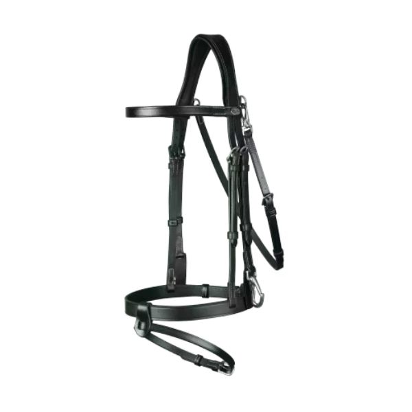 Designed for riders who demand efficiency and versatility, this flat leather bridle is made from rugged buffalo leather, giving it a strong, supple feel that stands up to the demands of daily work. With snap hooks on the cheekpieces and throatlatch, switching bits or removing the bridle is quick and hassle-free—ideal when working with multiple horses or switching disciplines throughout the day.