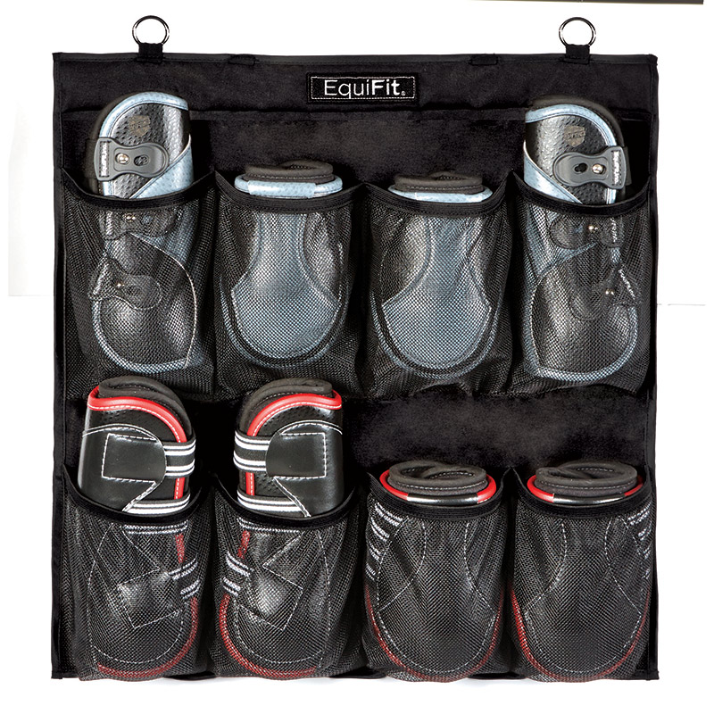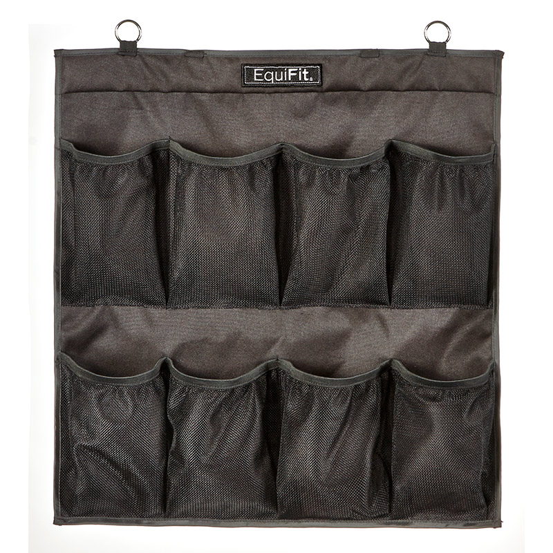 Hanging Boot Organiser provides easy and convenient storage for horse boots and equipment. Perfect for use at home or at shows, The Hanging Boot Organiser keeps important equipment safely stored, and easily accessible. The mesh material makes boots easily visible in each pocket. It also provides airflow and breathability, allowing boots to dry and stay funk-free. Two sizes make the Hanging Boot Organiser ideal for large barns with multiple sets of boots, or for an individual. Comes with stainless steel rings for hanging.